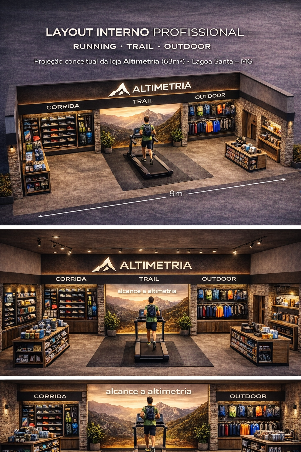 O espaço foi planejado para oferecer organização, curadoria técnica e uma jornada clara dentro da loja, permitindo que cada visitante explore o universo do running, do trail e do outdoor de forma intuitiva.